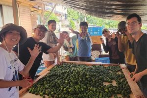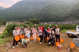 耕作放棄地を借り受けたり購入し、1年間かけて除草や雑木処理を行い、すだちを1000本植栽し、植えた後の圃場管理は草刈ロボットクロノスで無人化を進めています。また直近では、社員のアイデアで、高齢農家には身体的負担の大きいすだち収穫を手伝う収穫代行も対応していくことにしました。すだちだけでなく、ゆこう、ゆずも収穫代行を徳島県内全エリアでしています。人の成長と地域社会への貢献についてより体系的に学ぶために、国際認証B Corpを取得しました。最低賃金基準をクリアしておけばよいのではなく、地域で安心して生活できる基準をクリアする発想をB Corpから学び、社員には福利厚生として社員家庭用でじゃがいも、たまねぎ、キャベツなどを余剰野菜提供を始めています。