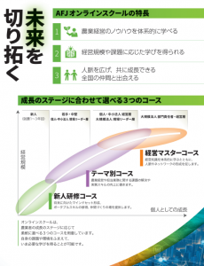 サー:農林中央金庫)では、農業経営をいつでも・誰でも・働きながら学べるオンラインスクールを開講しています。場所を問わず、必要なスキルに応じて受講できるほか、同じ課題を持つ受講者同士の交流の機会も設けています。